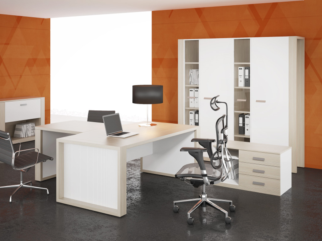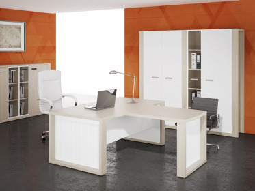 Кабинет RICHMOND создаст ощущение легкости и изящной законченности в интерьере, благодаря светлым оттенкам и встроенной подсветке опор стола руководителя.