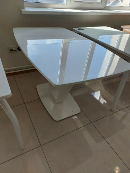 Стол минималистического дизайна с подчеркнуто строгим подстольем, слегка смягченным красивой плавной геометрией столешницы. Одно из безусловных преимуществ данной модели - вставка "бабочка", покрытая стеклом и увеличивающая стеклянную поверхность столешницы на 40 см. Угловые скругления делают стол безопасным и удобным в кухонном пространстве любой конфигурации.