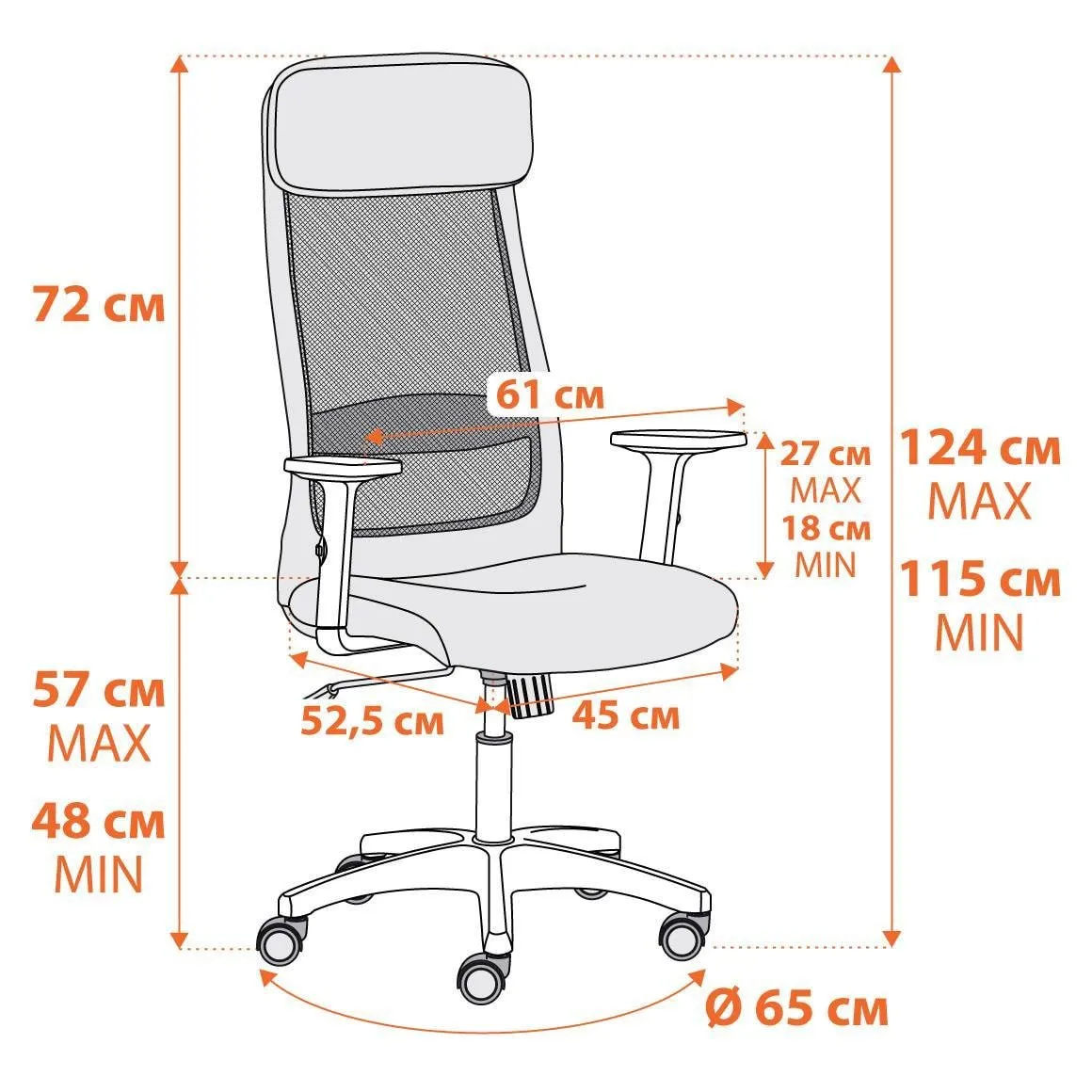 Кресло оснащено газлифтом 3 класса с ходом 100 мм, обеспечивающим подъем сиденья на нужную высоту.