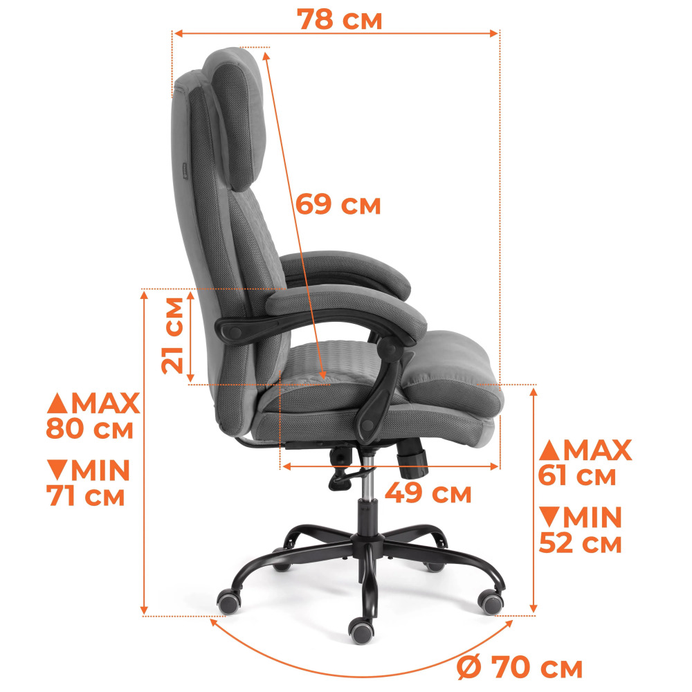 Мягкий подголовник, удобные фиксированные подлокотники с накладками.