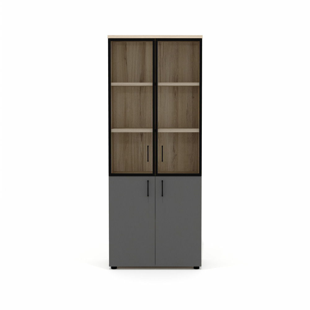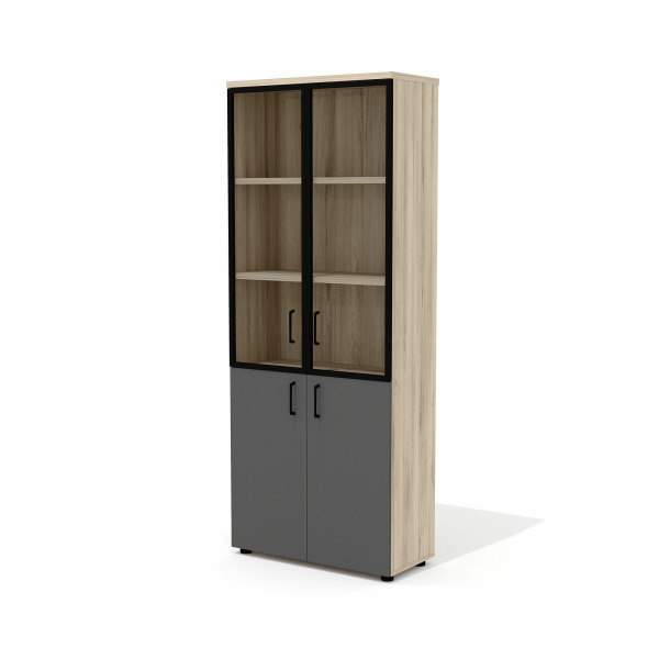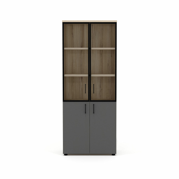L-46\ Шкаф комбинированный 80х37х201 Line дуб Кронберг/антрацит/стекло тонированное