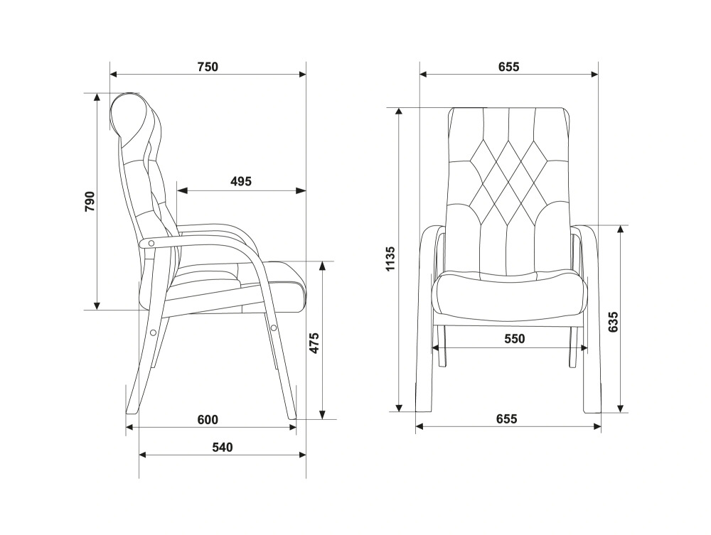 Каркас и подлокотники деревянные цвета «темный орех» Ограничение по весу: 120 кг Материал обивки: натуральная кожа (лицевые части) / экокожа (торцевые и задние части)