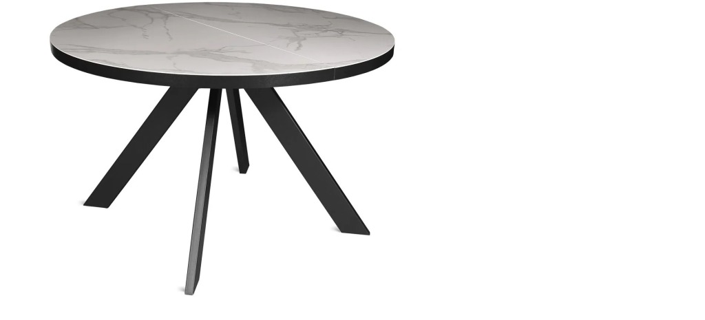 Стол DANTON 120(+40) черный\ керамика белый мрамор