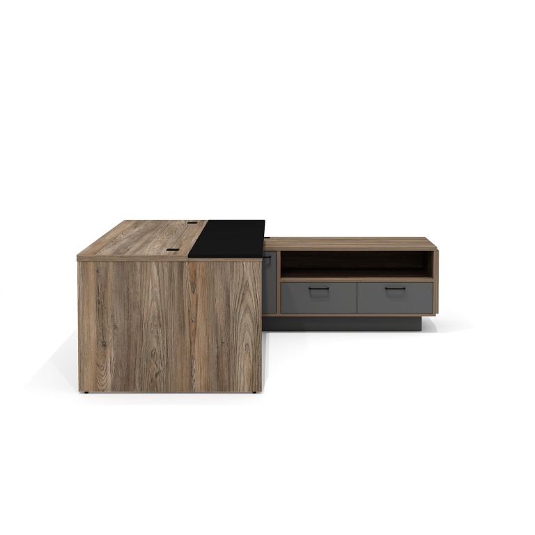 - Электрификация: 2 заглушки в столешнице, подстольный лоток для кабелей, 1 заглушка в топе тумбы.