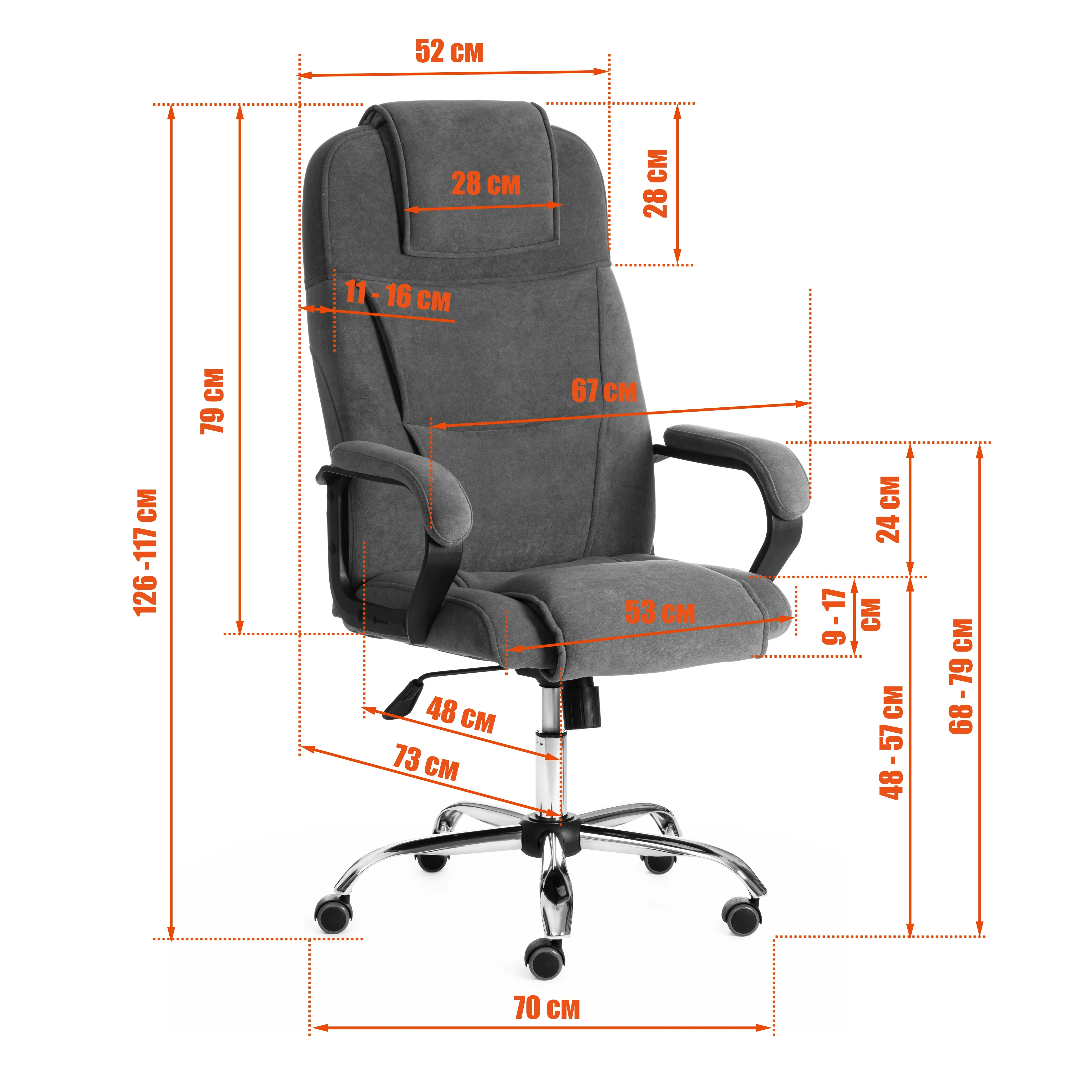Стильный дизайн кресла Bergamo/Бергамо хром (22) из коллекции Office/Офис станет прекрасным дополнением в интерьере офиса, переговорной комнаты или кабинета руководителя. Модель, имеющая привлекательный дизайн и элегантный внешний вид, понравится даже самому требовательному владельцу. Надежный каркас выполнен из усиленной фанеры толщиной более 10 мм. Такой материал отличается практичностью, прочностью и основательностью. Сиденье и спинка с мягким наполнителем из пенополиуретана (до 35 кг/м2) стандартной плотности обладают долгим сроком службы, не деформируются, пропускают воздух, отводят влагу и не накапливают пыль. Хромированная крестовина устойчива, способна выдерживать большие нагрузки. Офисное кресло регулируется по высоте и наклону с фиксацией в одном положении. Бесшумные полиуретановые колесики с прорезиненными вставками позволяют легко перемещаться с места на место, не повреждая ламинат или паркет. Ролики и крестовина в креслах бренда Tetchair соответствуют стандарту Bifma. Во всех креслах бренда Tetchair используются газлифты 3 класса, он способен выдерживать вес до 120 кг. Фиксированные пластиковые подлокотники с мягкими накладками помогут снять напряжение с плеч и шеи при длительной работе. Благодаря обивке из износостойкой высокопрочной экокожи и прочного флока модель не требует сложного ухода, не теряет своего первоначального вида долгие годы, обладает отличными эксплуатационными качествами. Экокожа, используемая при изготовлении кресла, выдерживает до 50 000 циклов на истирание по Мартиндейлу, ткань флок также выдерживает до 50 000 циклов. Ткани с прочностью более 35 000 циклов являются самыми долговечными. Компьютерное кресло Bergamo/Бергамо хром (22) изготавливается в коричневом, черном, бежевом, сером, синем и белом цветах. Эргономичная модель подчеркнет безупречный вкус владельца, будет радовать своей долговечностью, красотой и практичностью продолжительное время. Офисное кресло поставляется в разобранном виде. Необходима простая сборка по прилагаемой инструкции. Максимальная нагрузка 120 кг.