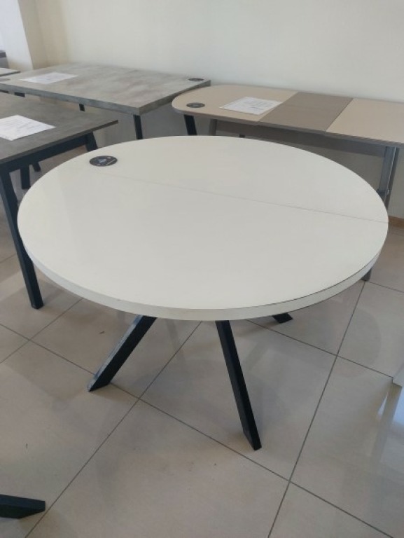 Стол RONDO-110, круглый раздвижной со стеклом 110(145), БЕЛЫЙ ОПТИВАЙТ/ЧЕРНЫЙ_УЦЕНКА
